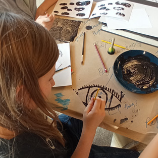 For the art project, we put aside our worries and boundaries to play with paper and paint. We were experimenting with printmaking techniques while using a limited colour palette to be able to focus on the interaction between different paint and paper qualities.